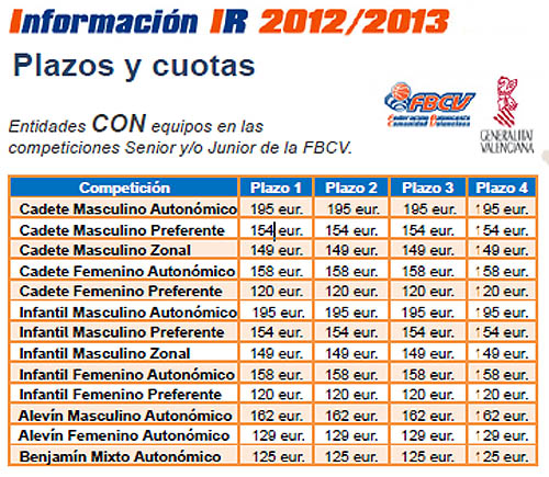 Per a júniors i sèniors es contempla una xicoteta pujada de quotes i l'obligació d'abonar-les entre ocubre, novembre i desembre perquè com ja hem dit, Federació cobra per davant, fins i tot la primera quota, quan encara no ha començat ni la competició.